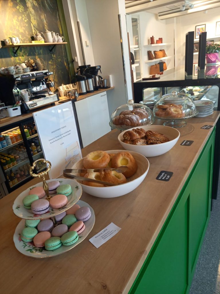 Kahvilan tuotteissa panostamme lähituottajien laadukkaista raaka-aineista leivottuihin artesaaniherkkuihin kuten Annalla kukka ja kakku suussa sulaviin leivonnaisiin ja Eromangan suolaisiin ja makeisiin herkkuihin. Lisäksi valmistamme itse aina sesonkin mukaisia tuotteita 4 vuoden ajan rytmin mukaan. Vitriinissä on aina myös tarjolla gluteenitonta.
